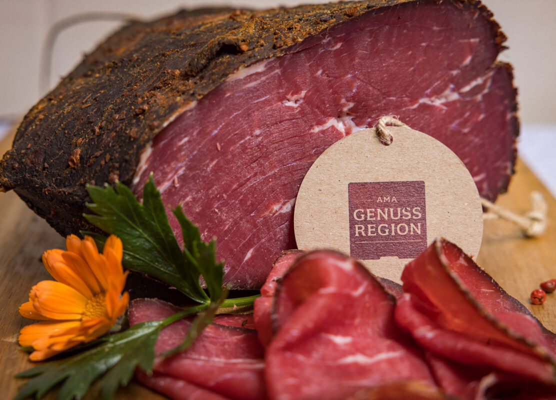 Unser Hauptgeschäft sind Fleisch- und Wurstwaren. Das Rindfleisch stammt zu 100 % von unserem eigenen Hof, das Schweinefleisch in 4x AT-Auszeichnung wird regional zugekauft und das saisonal vorhandene Wild kommt von Jagden aus Zell am Pettenfirst.