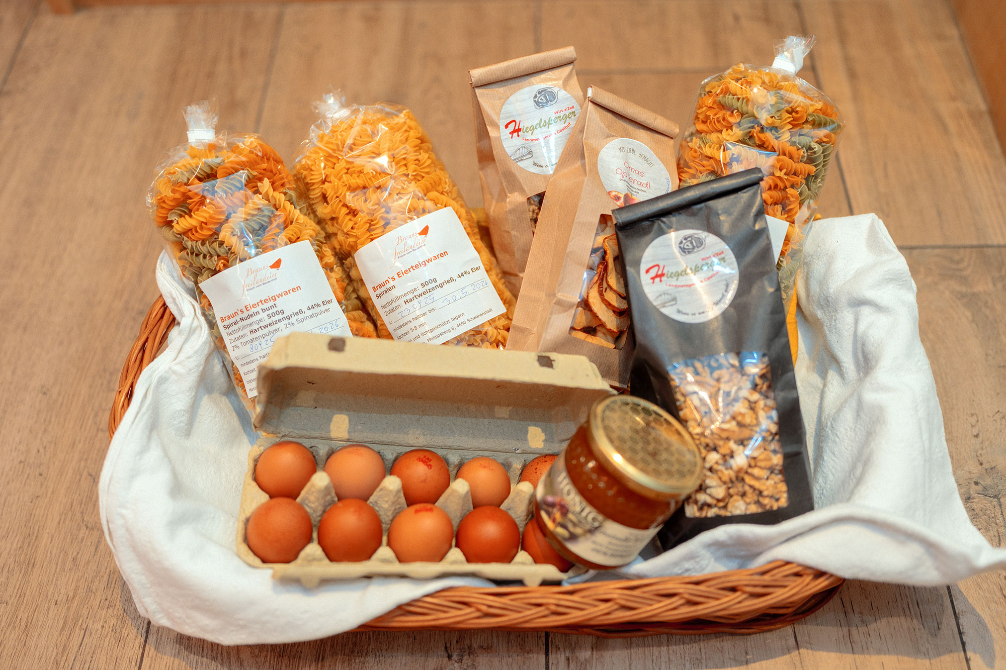 Bei uns bekommst du Frischfleisch, Würste und Aufschnitt, Räucherwaren, verschiedene Fertig- und Halbfertigprodukte sowie Eier, Nudeln, Honig, Marmeladen und weitere saisonale Schmankerl.